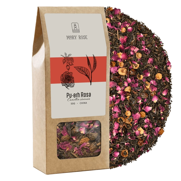 - Mary Rose Pu-erh Rosa is a sensual combination of puerh tea and rose additives - rosehip and rose flower petals.