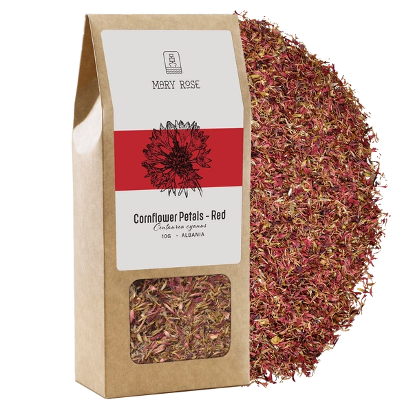 - The cornflower (red) from Mary Rose is often used as an ingredient in infusions. It also works well in cosmetics as it will be perfect for washing the skin. You can also prepare a relaxing and aromatic bath with it.
