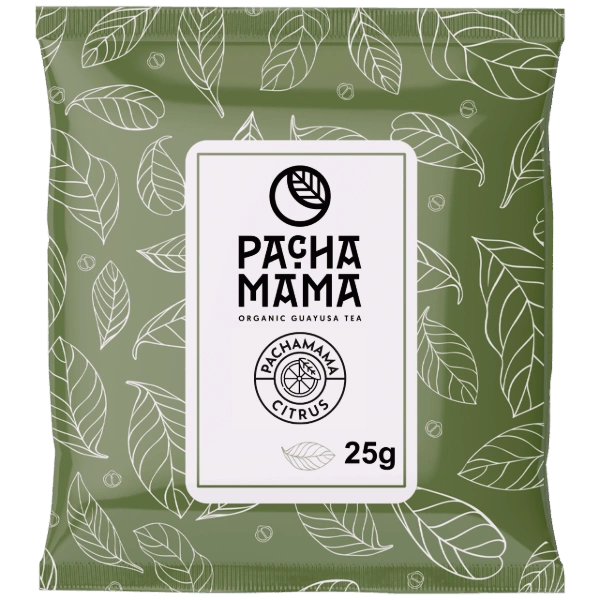 - Guayusa Pachamama Citrus to wyborne połączenie delikatnej w smaku guayusy z orzeźwiającą miętą, hibiskusem i naturalnym pomarańczowym olejkiem. Doskonale pobudza i orzeźwia. Idealna propozycja na lato!