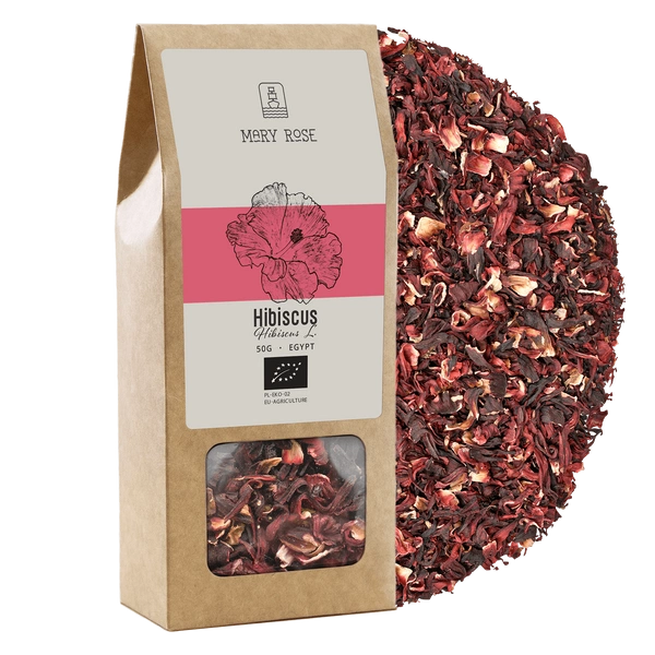 Hibiskus, znany również jako malwa sudańska, jest egzotyczną rośliną tradycyjnie uprawianą w Afryce i Azji. Ze względu na liczne korzystne właściwości i charakterystyczny kwaskowaty smak, kwiat hibiskusa od wieków znajduje liczne zastosowania. Oferowany przez nas hibiskus pochodzi z ekologicznej uprawy i posiada organiczny certyfikat.